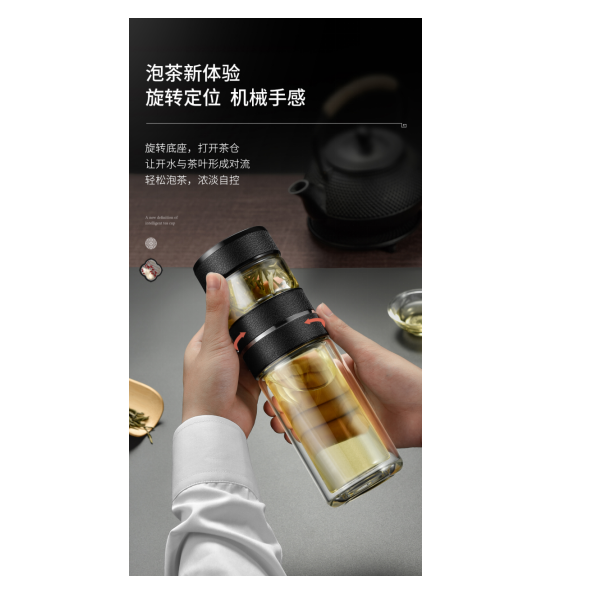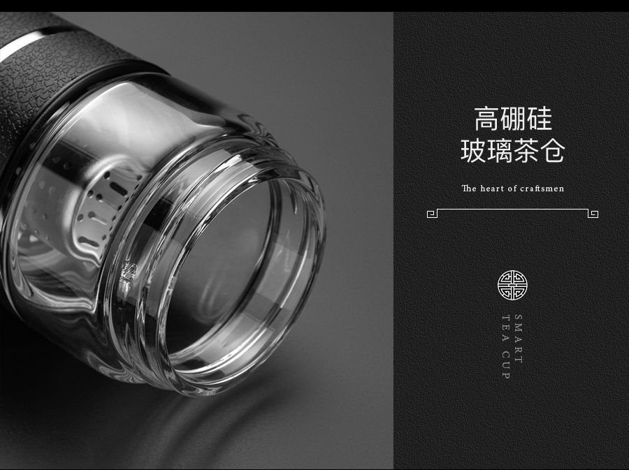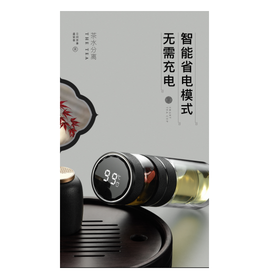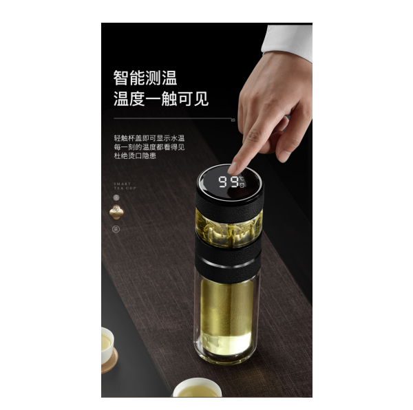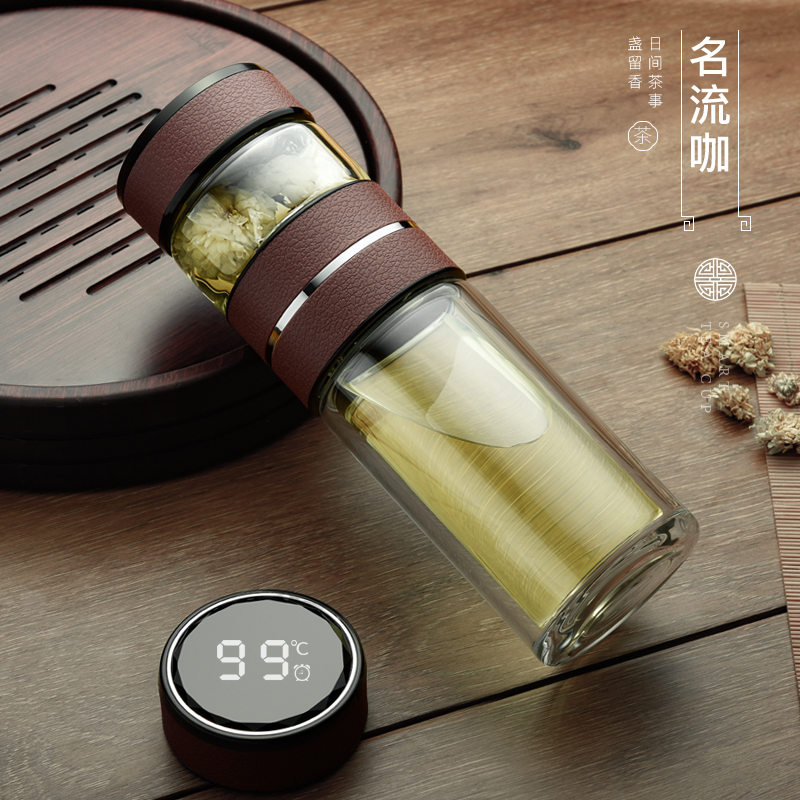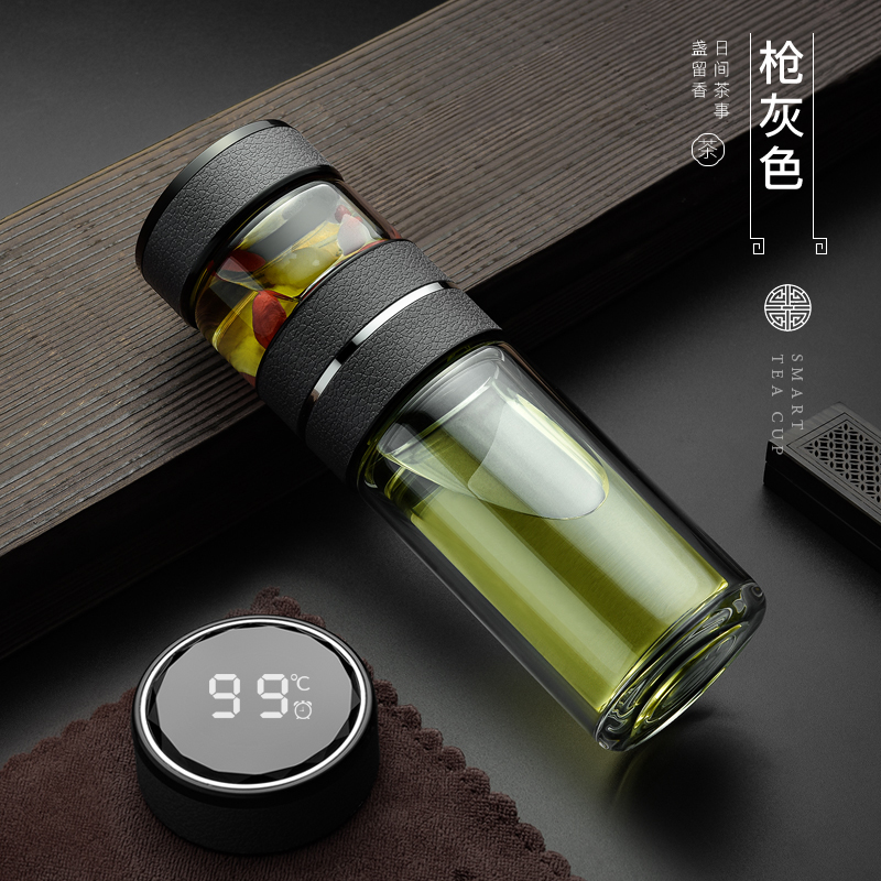 全智能茶水分离双层玻璃防烫定时闹钟智能提醒喝水保温杯礼盒装企业定制礼品350ML