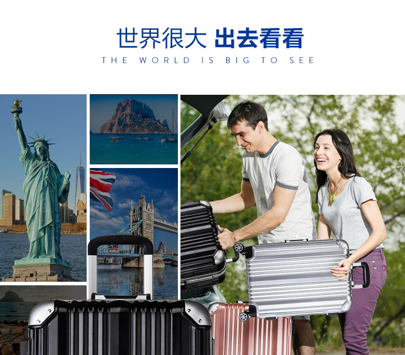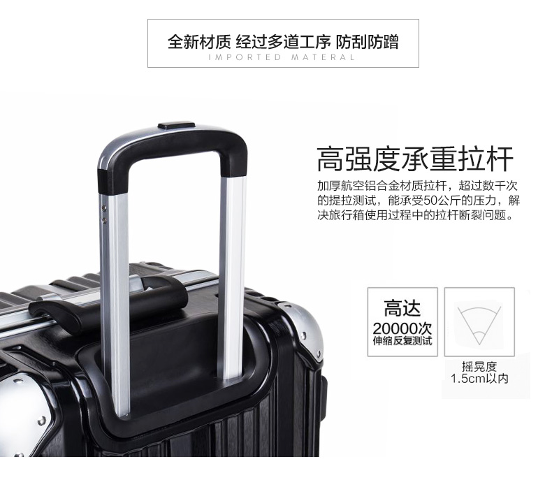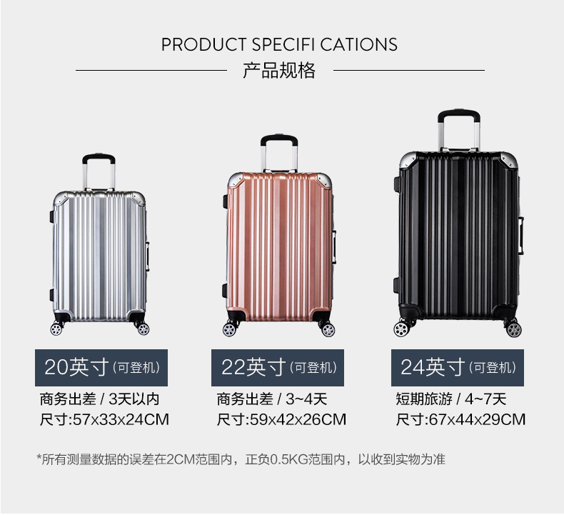 铝框拉杆箱 拉丝银 深框铝框 万向轮行李箱男士女士登机箱20/24英寸