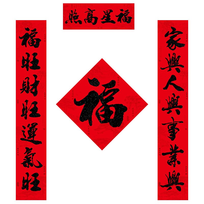 ● 工艺:黑金粉、中国红,铜版纸上植绒 ● 材质:铜板纸 ● 字体:李旭峰名家书法字体