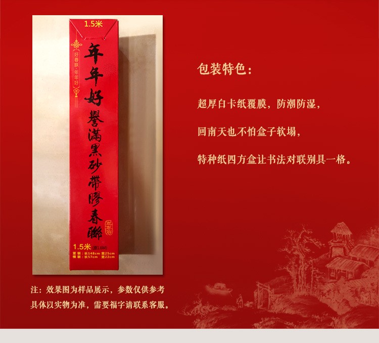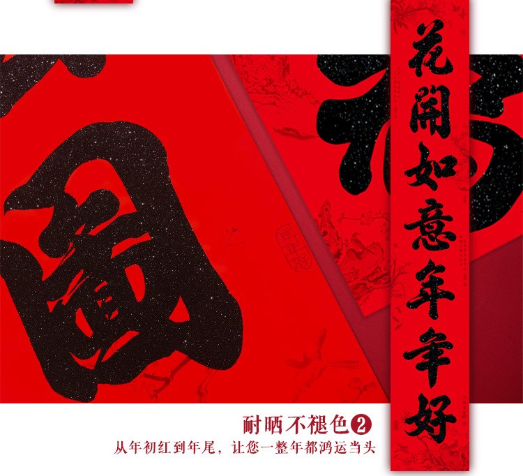 特色: 耐晒不褪色,年头红到年尾,日子红红火火 |