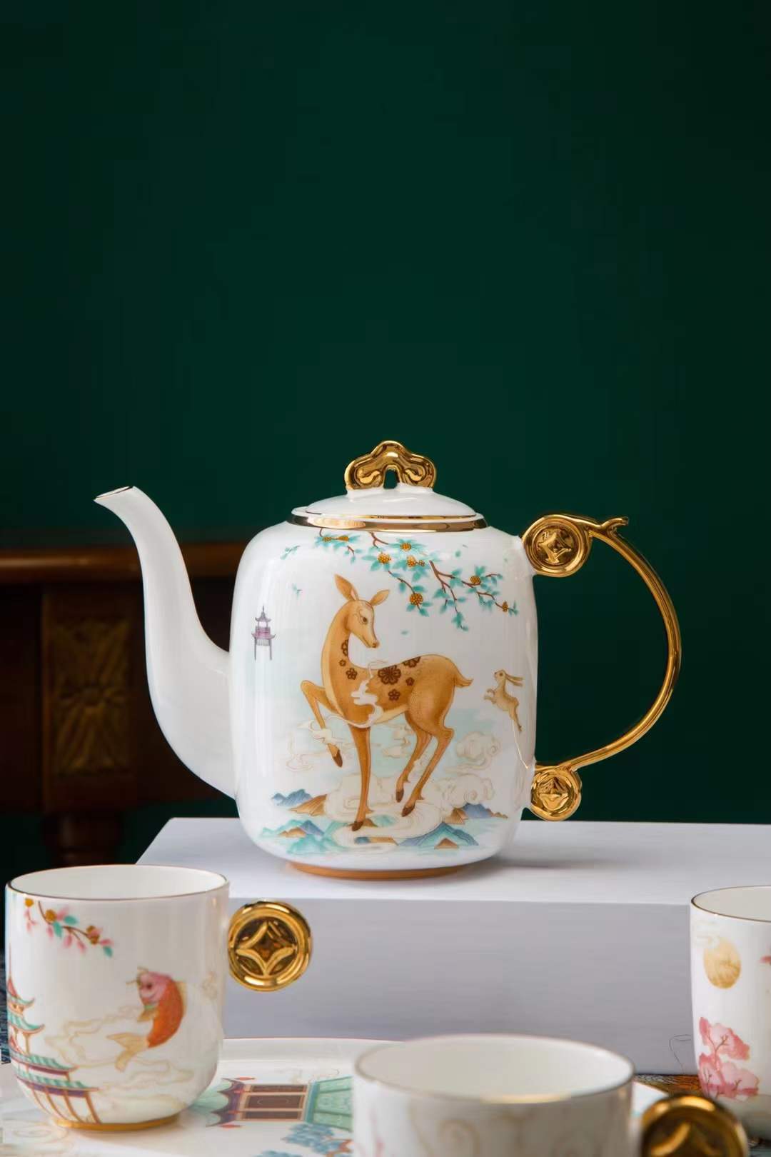9头陶瓷茶具 如意茶壶 1 财运茶杯 6