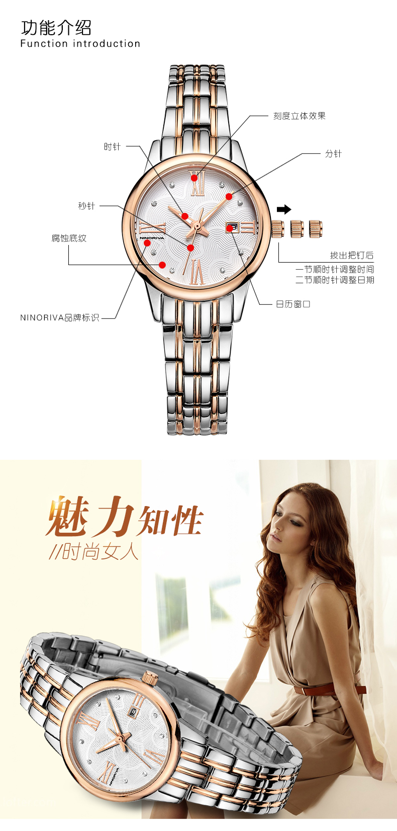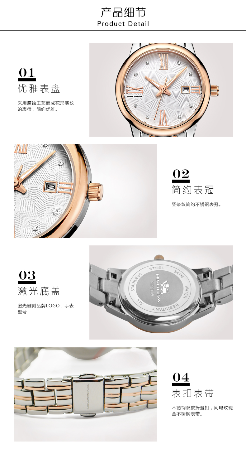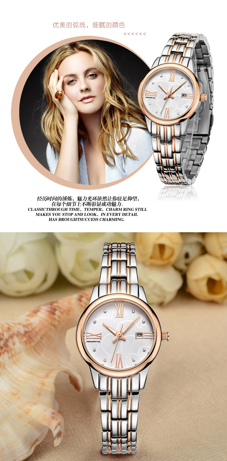 尼诺里拉NINORIVA金色高档油压纹时尚女士腕表31009