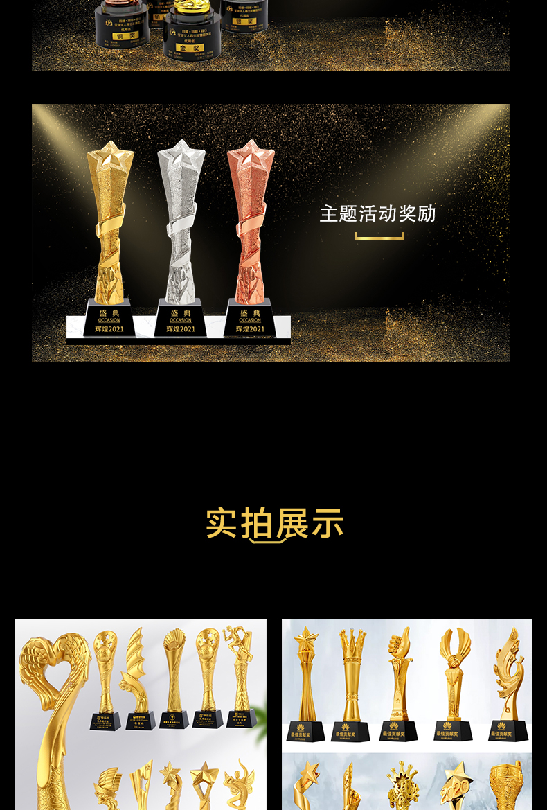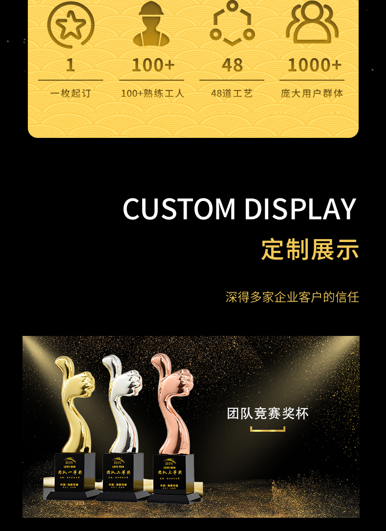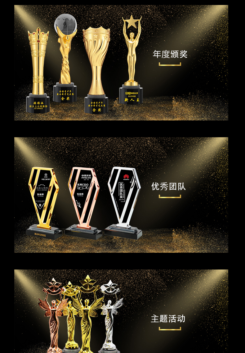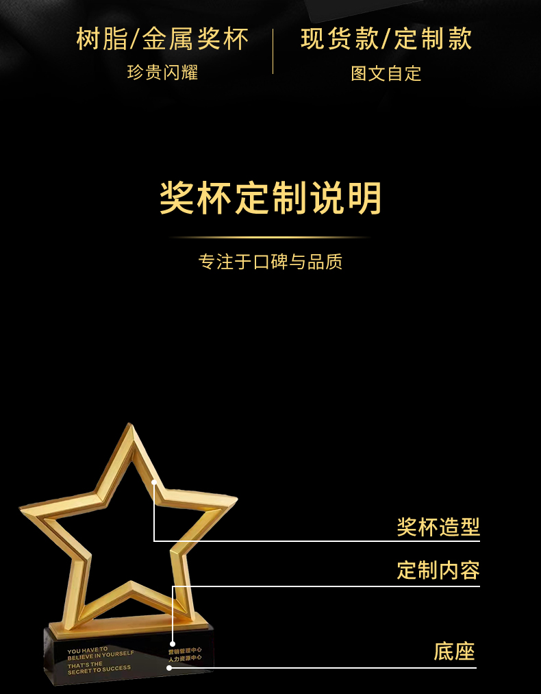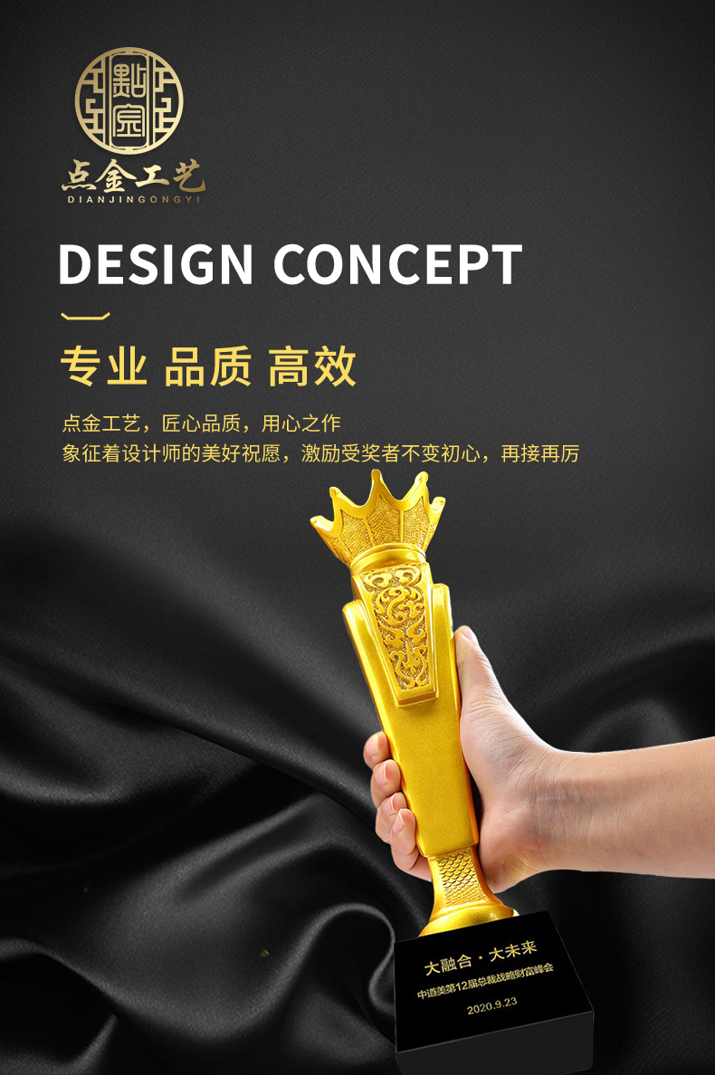 奖杯定制免费刻字diy创意设计盒子高档大气镀金属树脂奖杯订制
