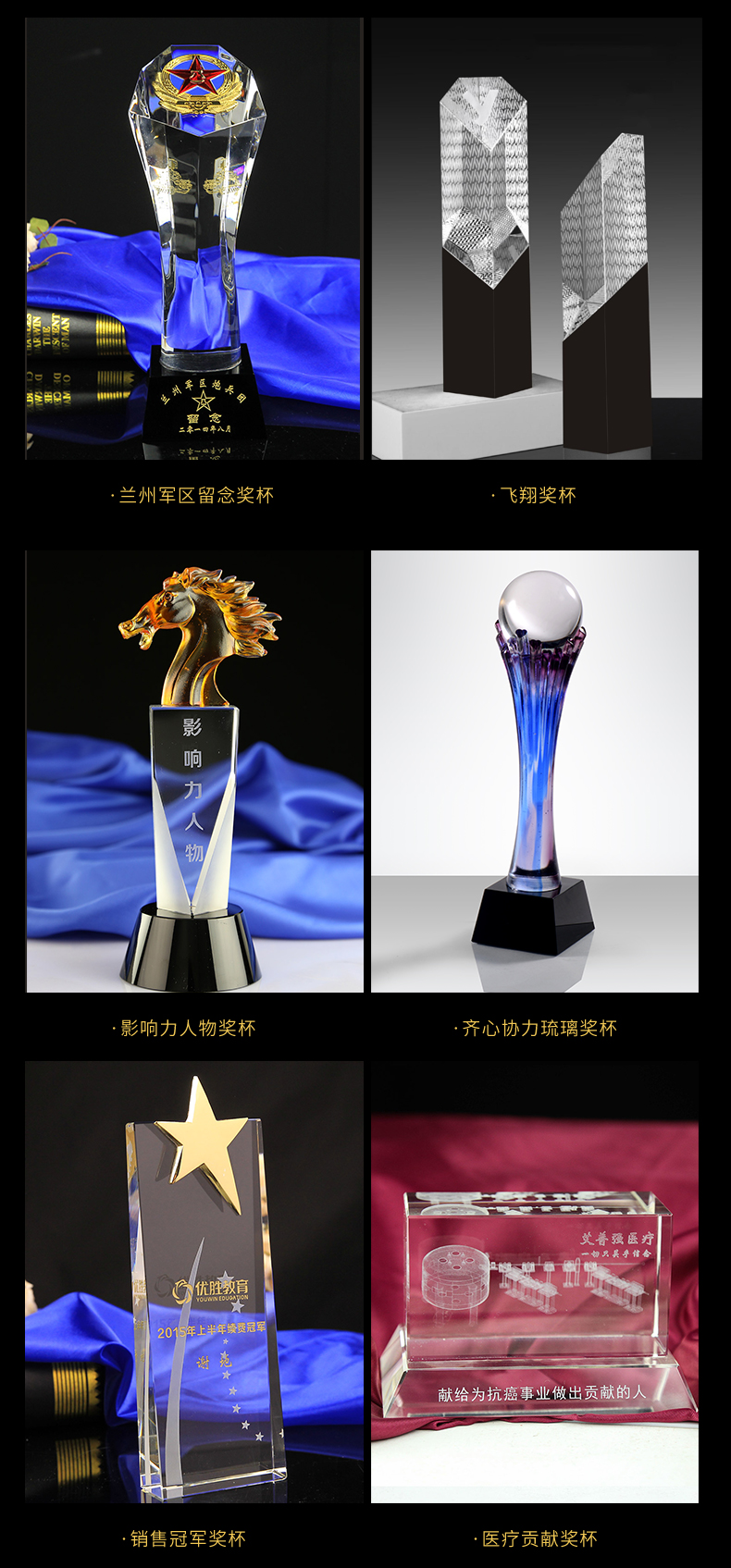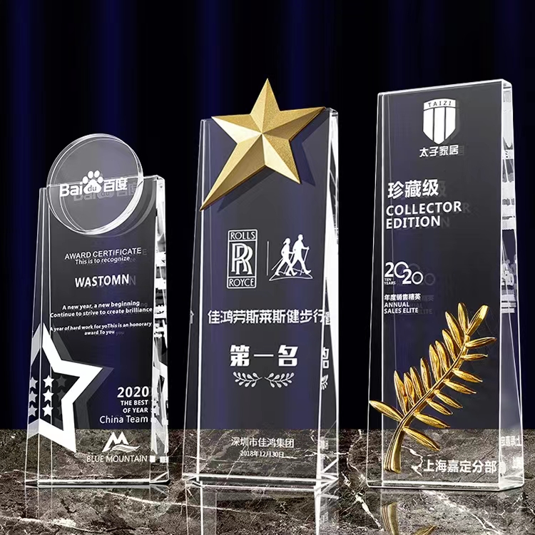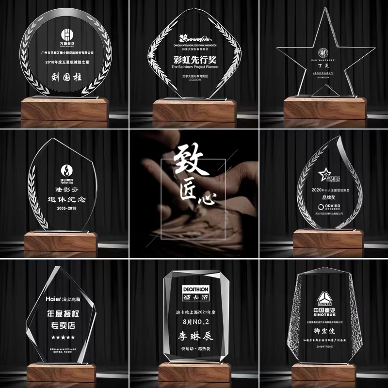 水晶奖杯定制创意实木高档大气刻字定做年会优秀员工冠军奖杯订制