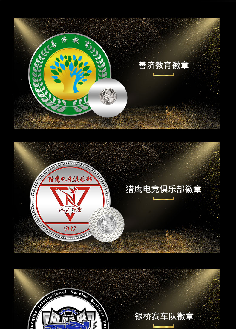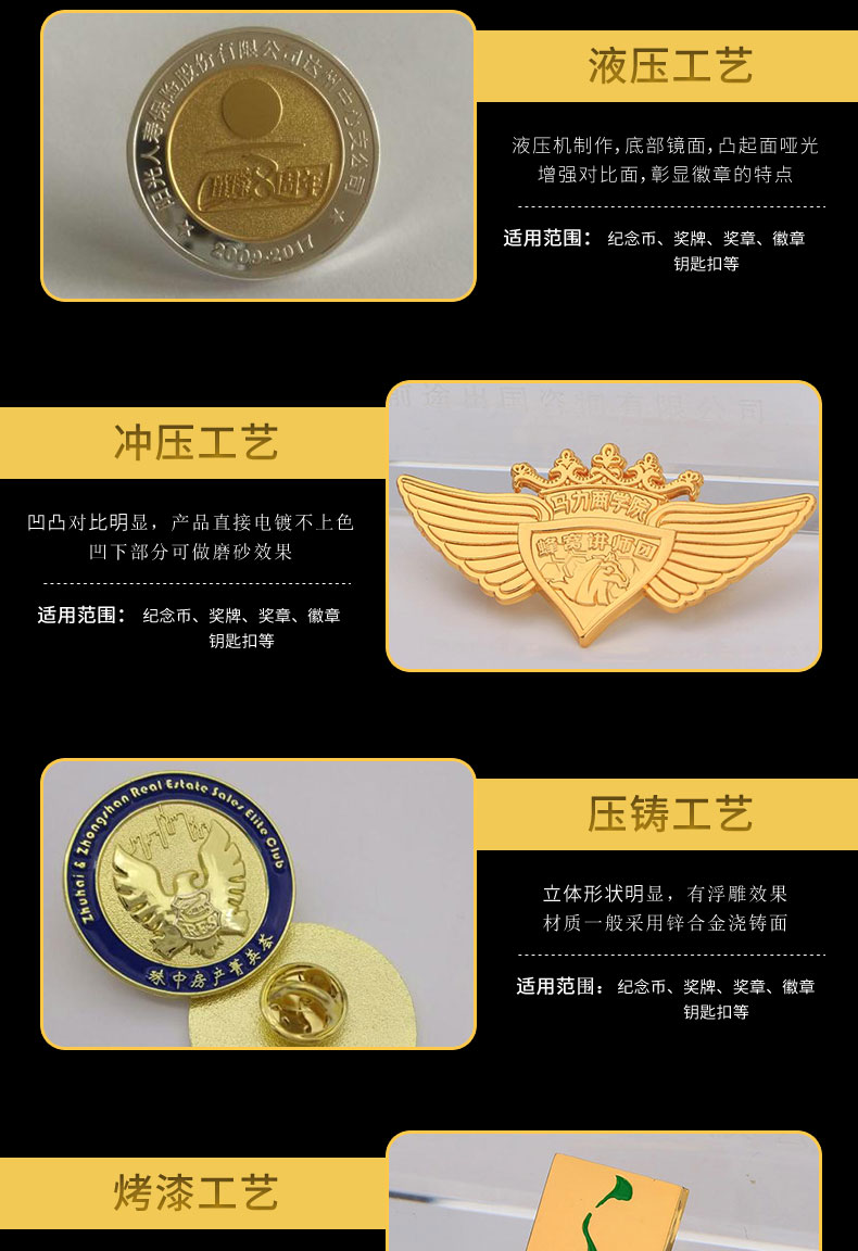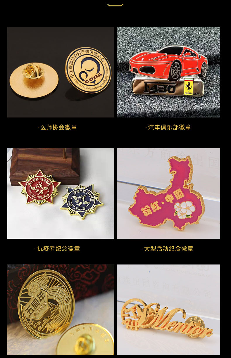 点金工艺徽章定做周年纪念司徽员工入职礼品校班徽纯金银胸针定制