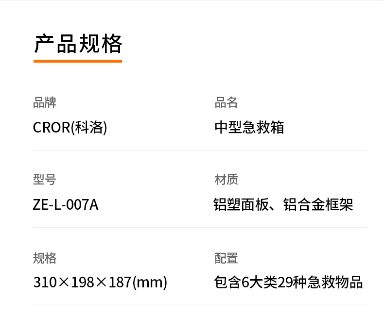 急救箱供应:科洛(CROR)ZE-L-007A中型急救箱