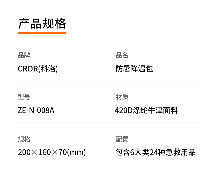 应急包供应:科洛(CROR)ZE-N-008A防暑降温包