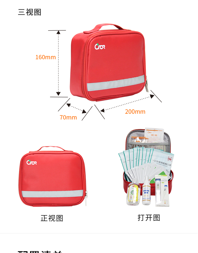 该款软包针对疫情防护配备,可作为外出随身携带,防护用具配置齐全。