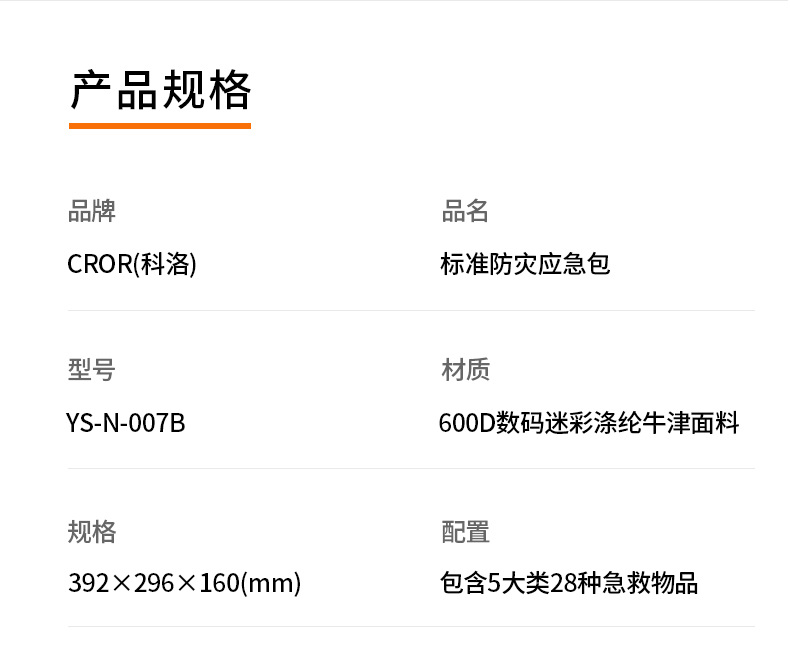 应急包厂家供应:科洛(CROR)YS-N-007B 标准防灾应急包