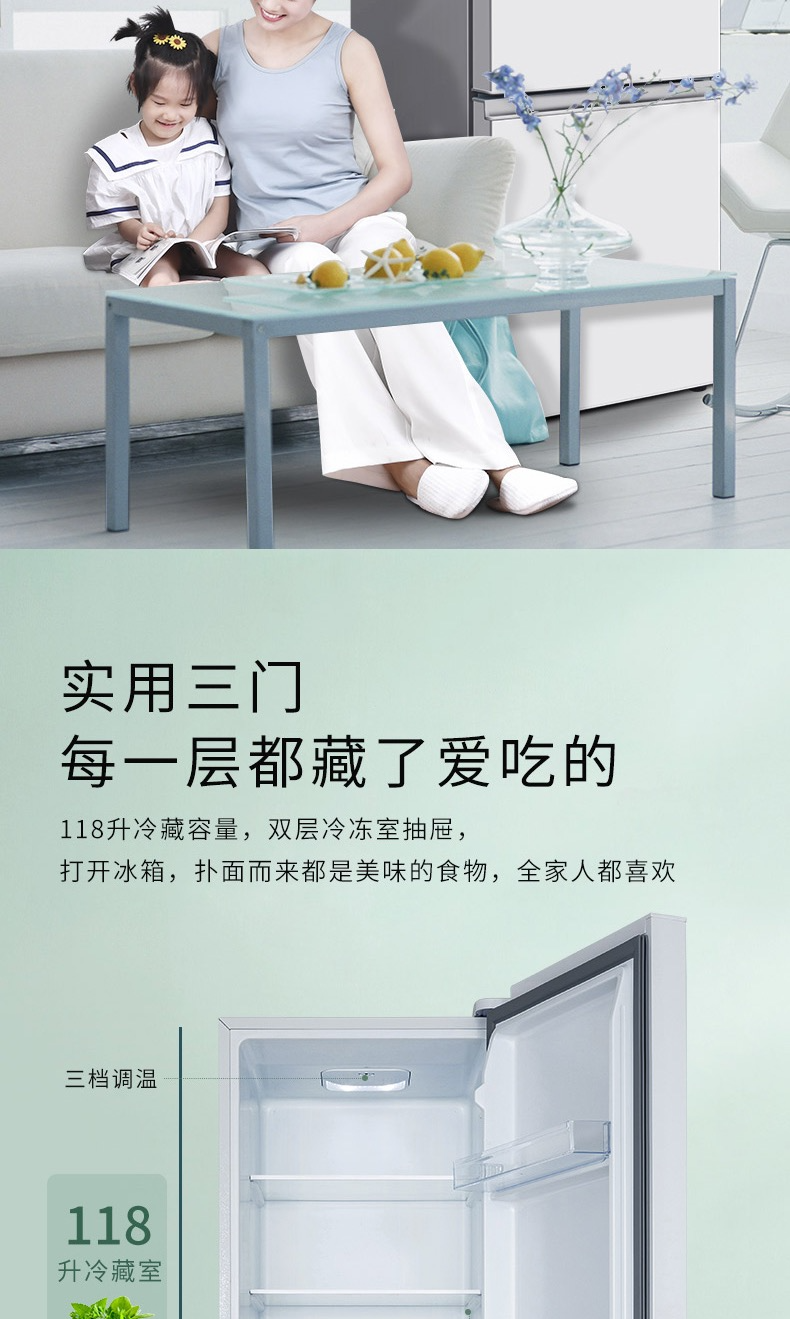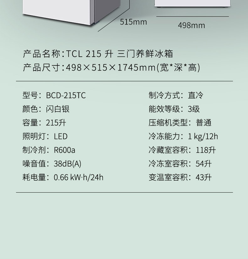TCL215升三门冰箱-BCD-215TC闪白银(新)