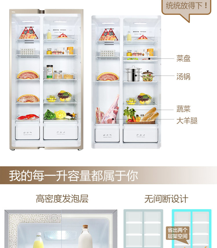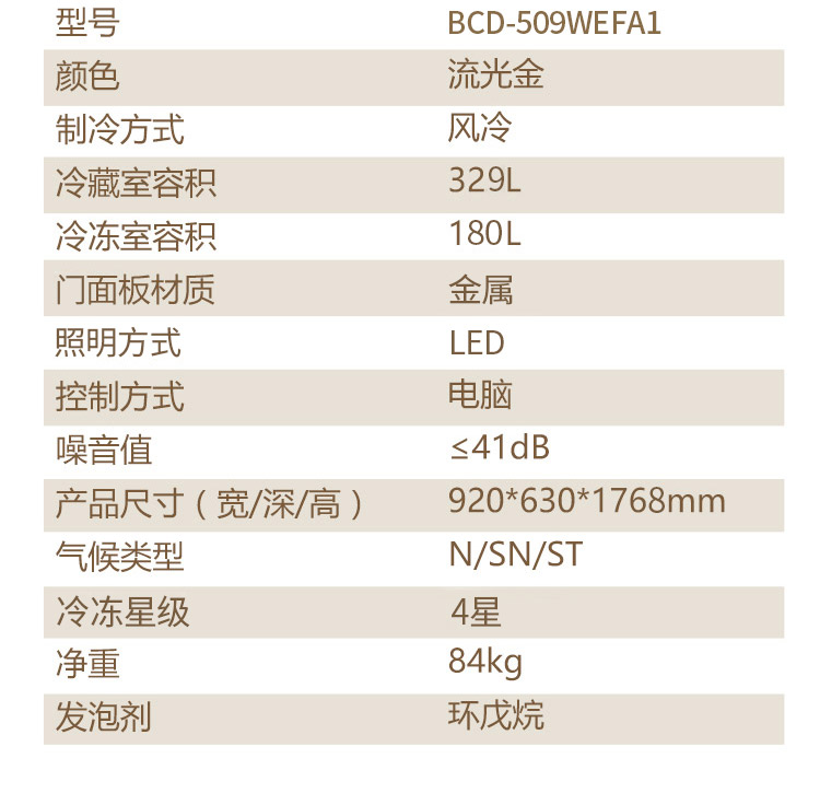 TCL509升对开门冰箱-BCD-509WEFA1流光金