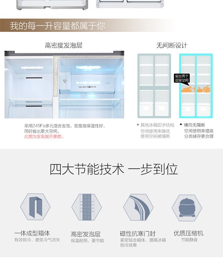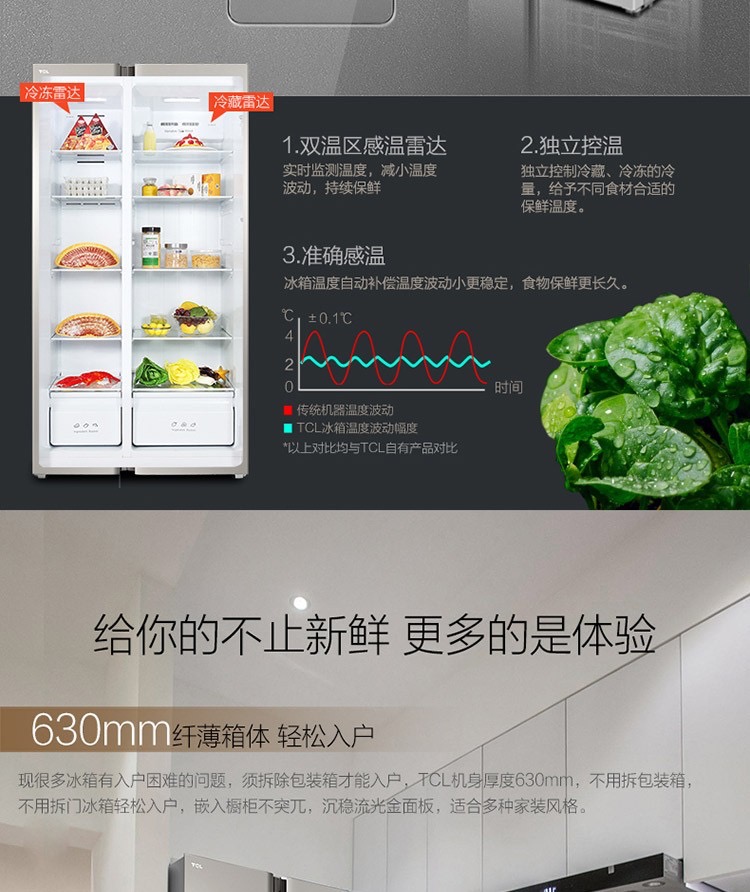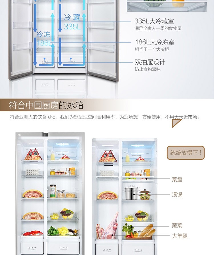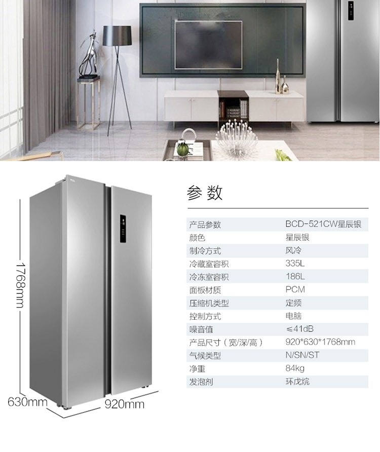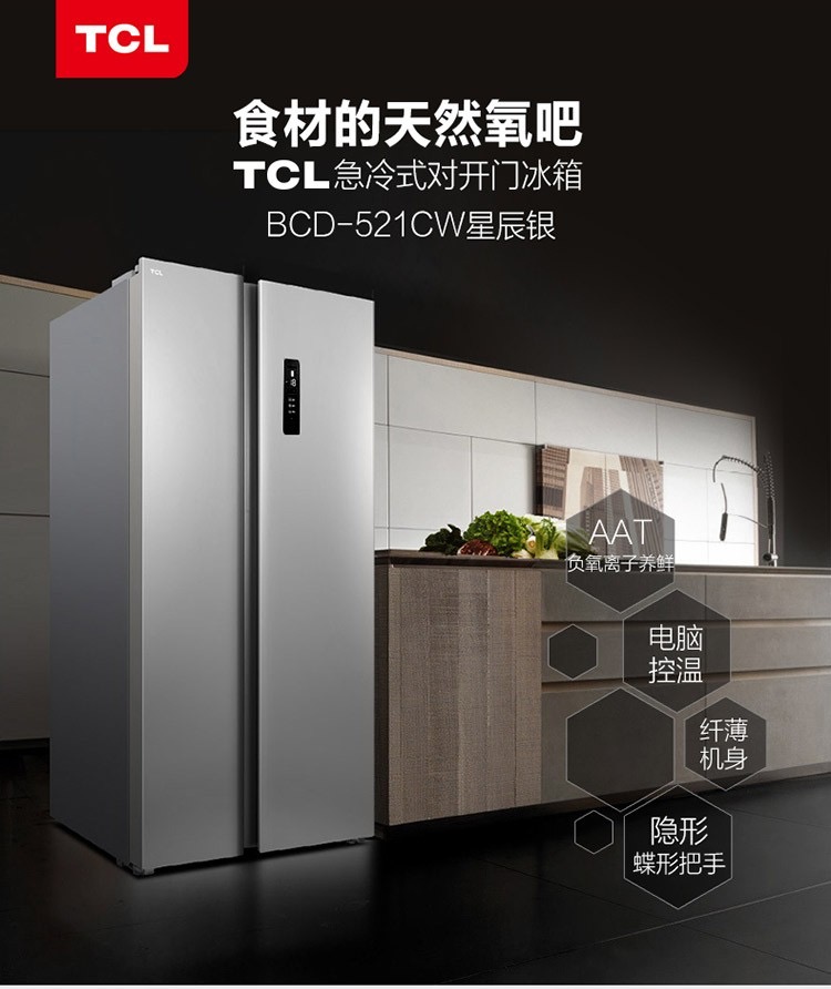 TCL521升对开门冰箱-BCD-521CW星辰银