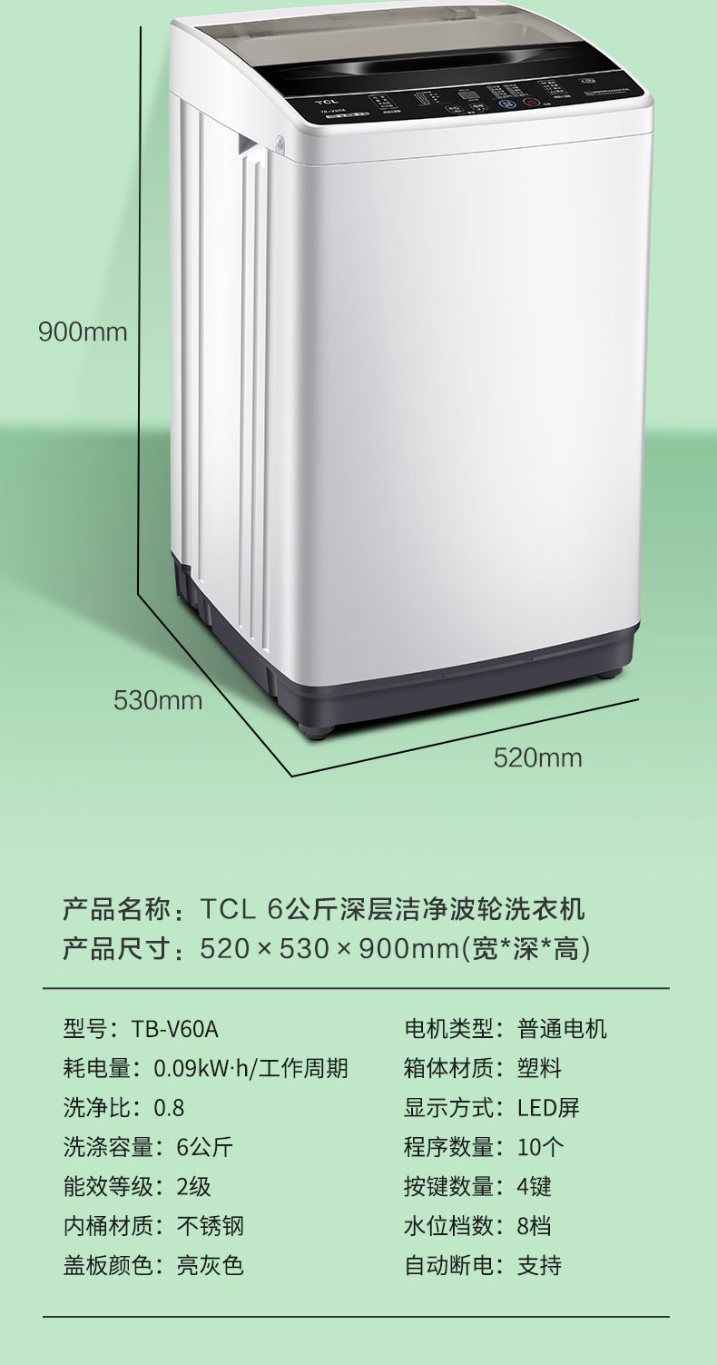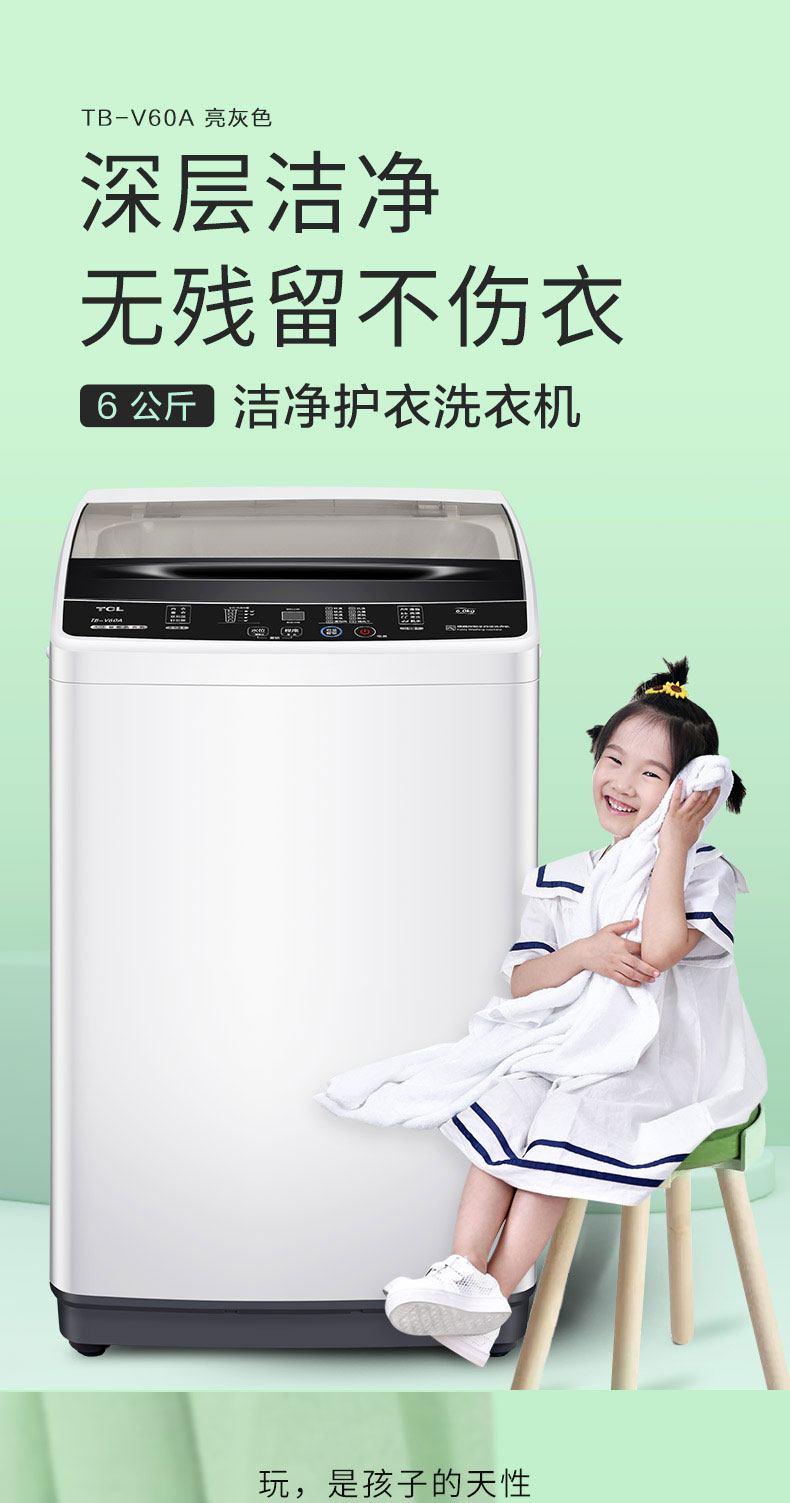 TCL6公斤全自动洗衣机-TB-V60A亮灰色
