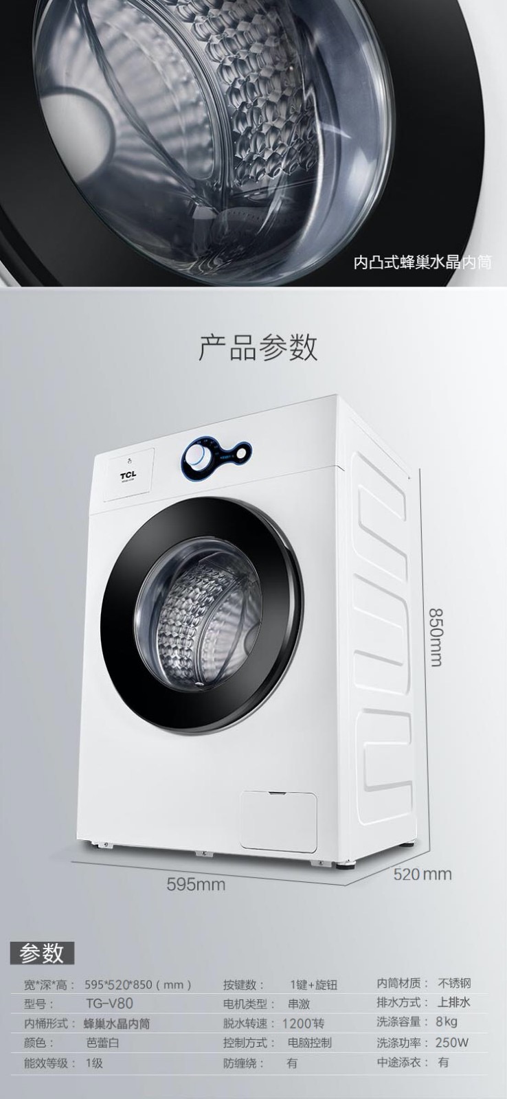 TCL8公斤滚筒洗衣机-TG-V80芭蕾白