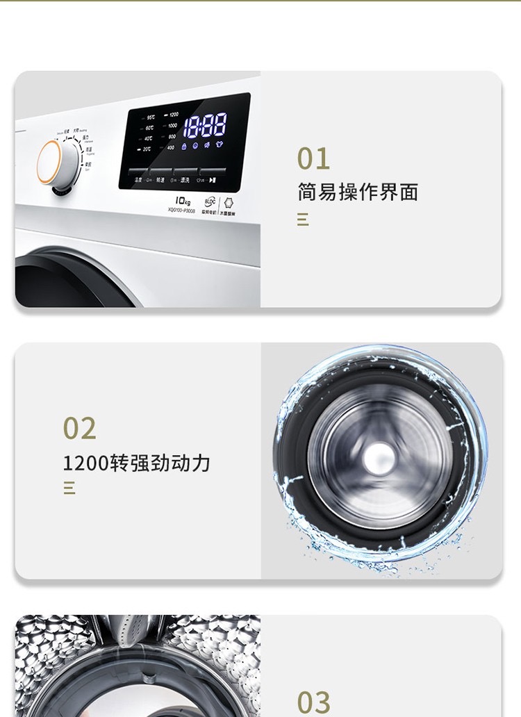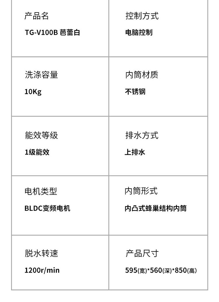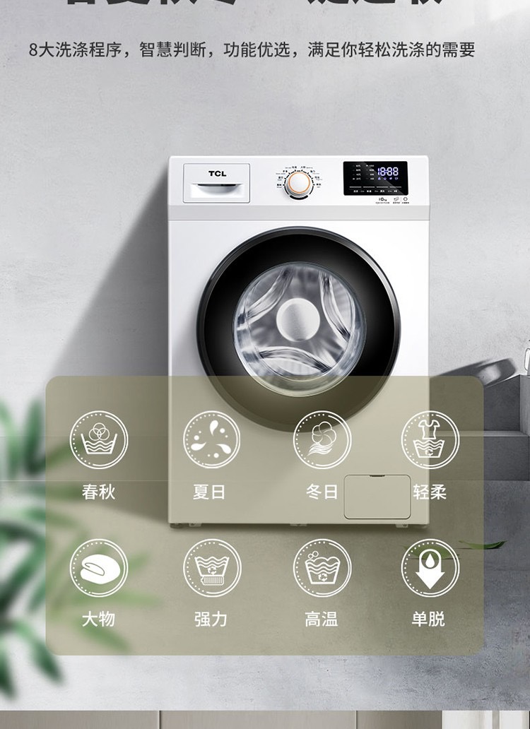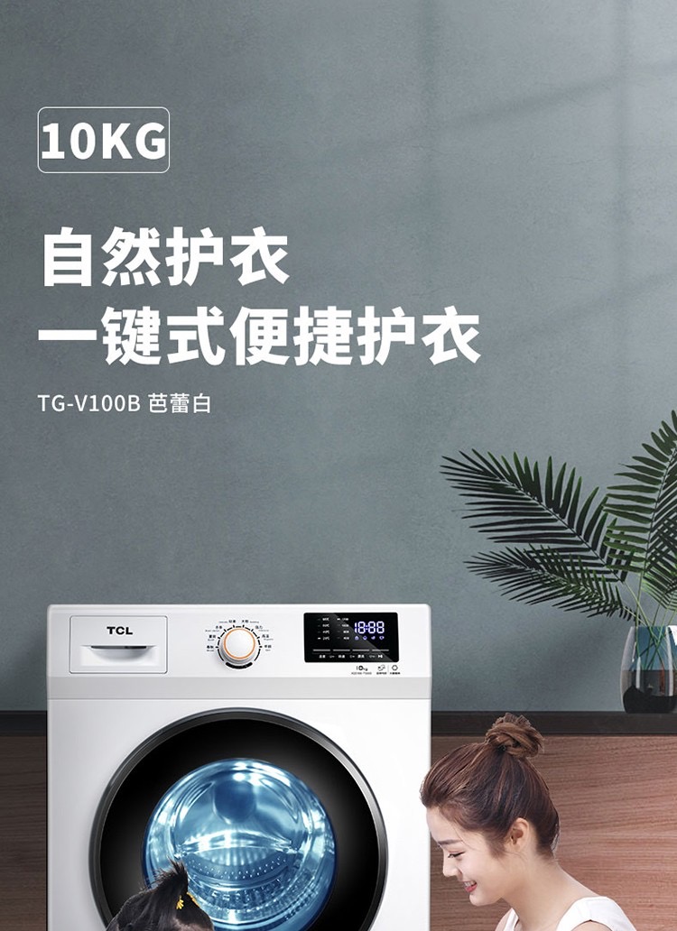 TCL10公斤滚筒洗衣机-TG-V100B芭蕾白