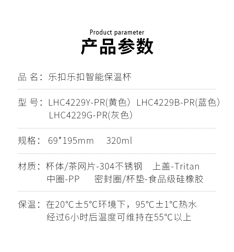乐扣乐扣智能保温杯LHC4229-包销款混色发货