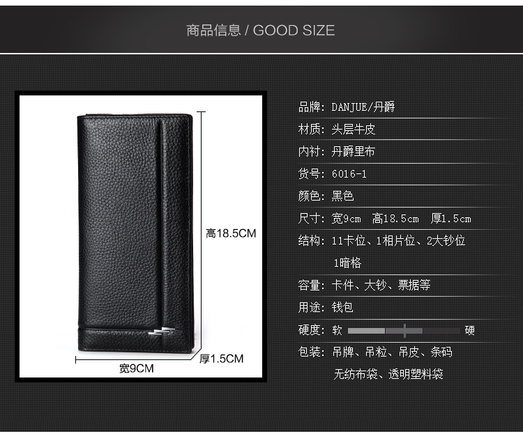 丹爵(DANJUE)头层牛皮商务休闲两用中长款多卡位男女通用型钱包钱夹D6016-1
