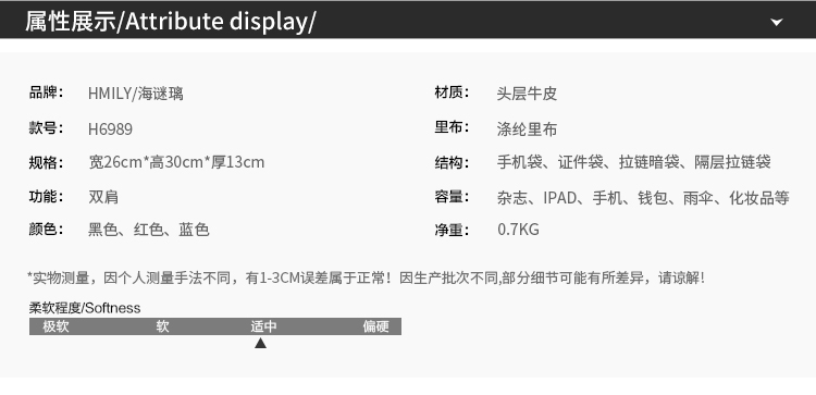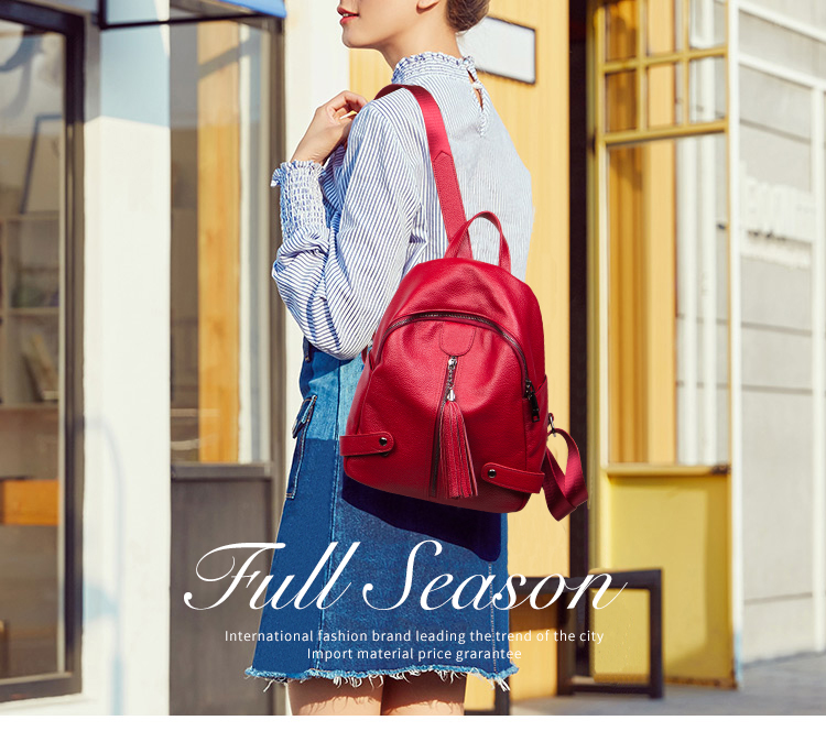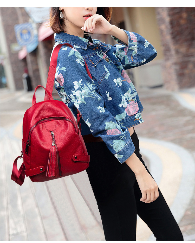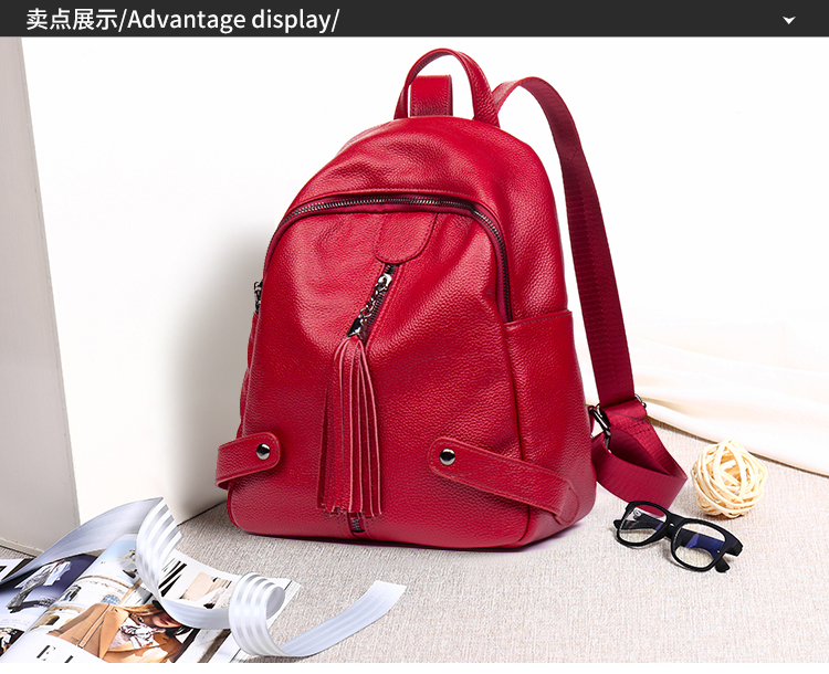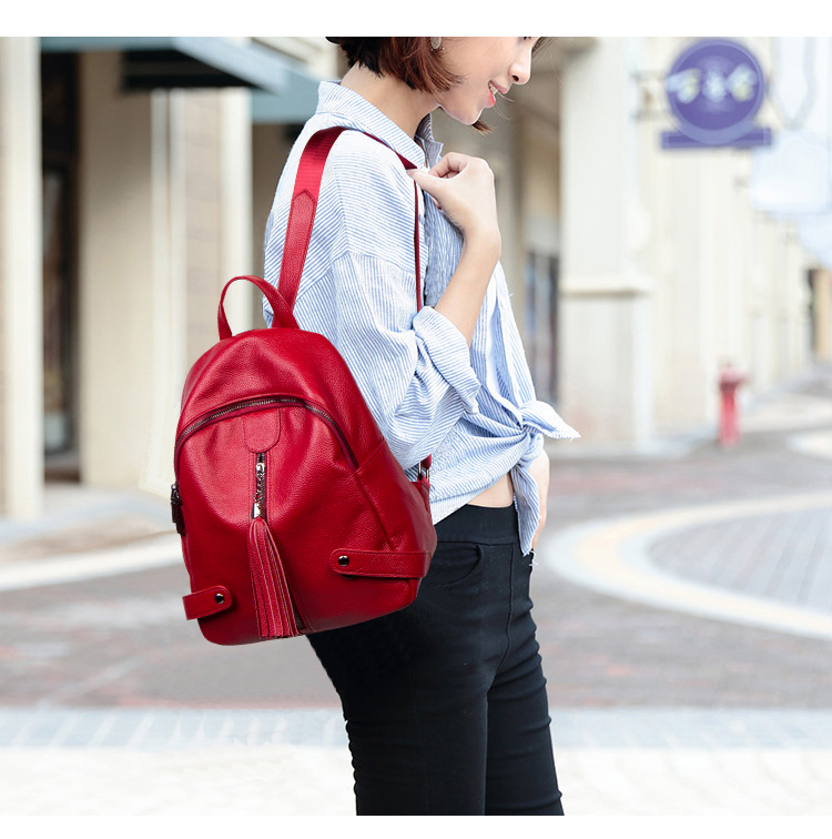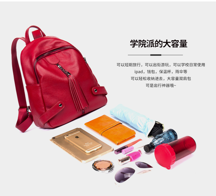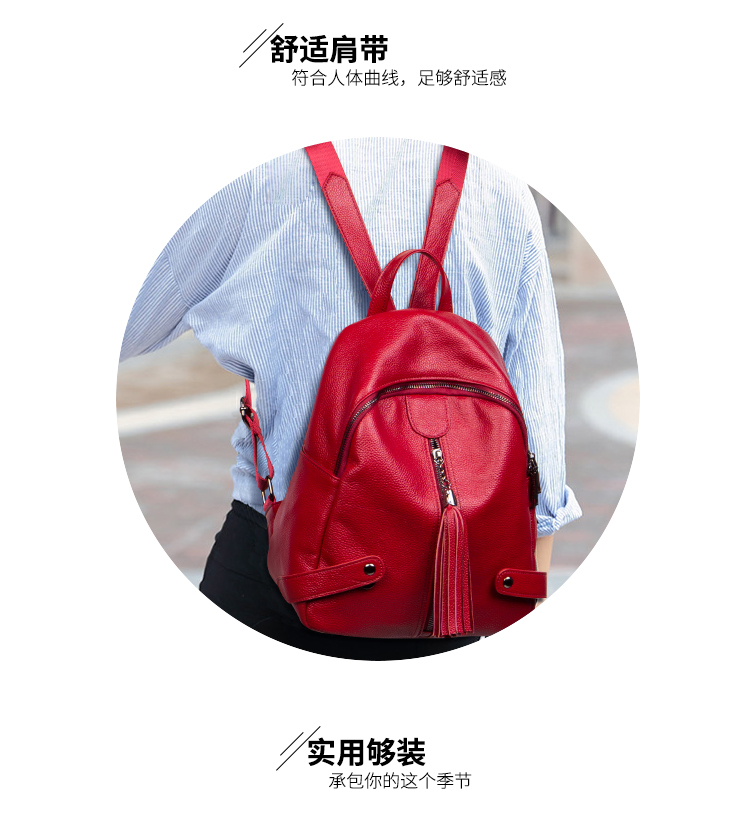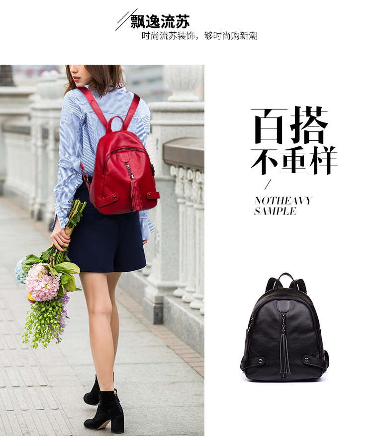 海谜璃(HMILY)女士头层牛皮双肩包欧美时尚休闲背包实用百搭大容量潮女包 H6989