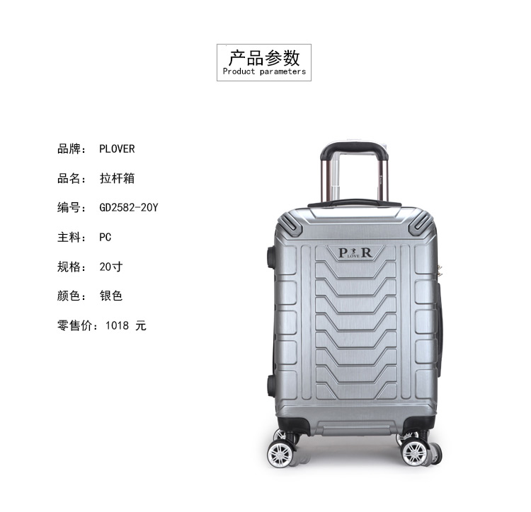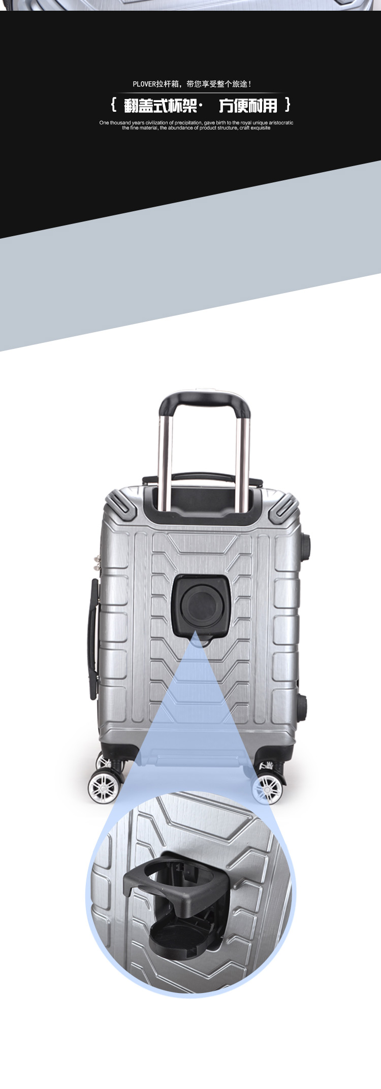 啄木鸟拉杆箱韩版旅行箱包密码行李箱登机皮箱子万向轮水杯装置翻盖式杯架学生男女20寸/24寸银色GD2582-20Y/24Y