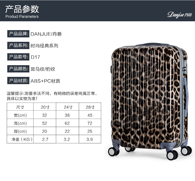 丹爵(DANJUE)20/24/28寸拉链款拉杆箱万向轮防刮痕行李箱男女登机箱旅行箱D17 20寸