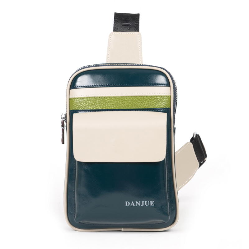 丹爵(DANJUE)男士胸包头层牛皮时尚休闲单肩斜挎包男式小包潮流男款胸包8749-1