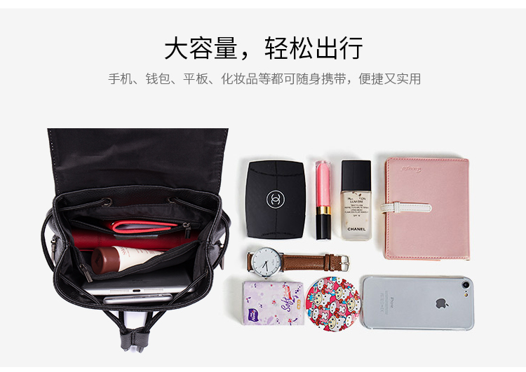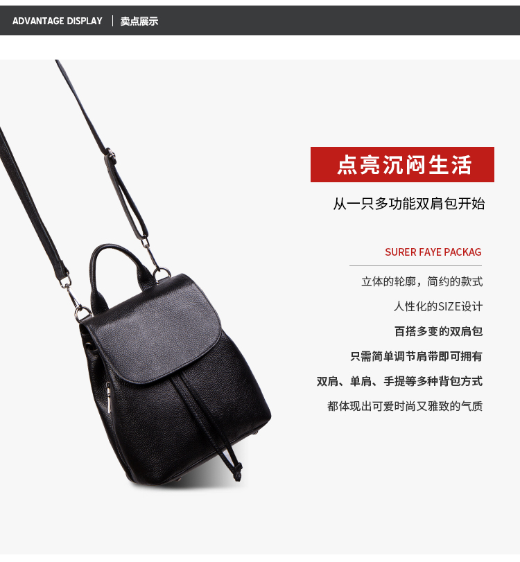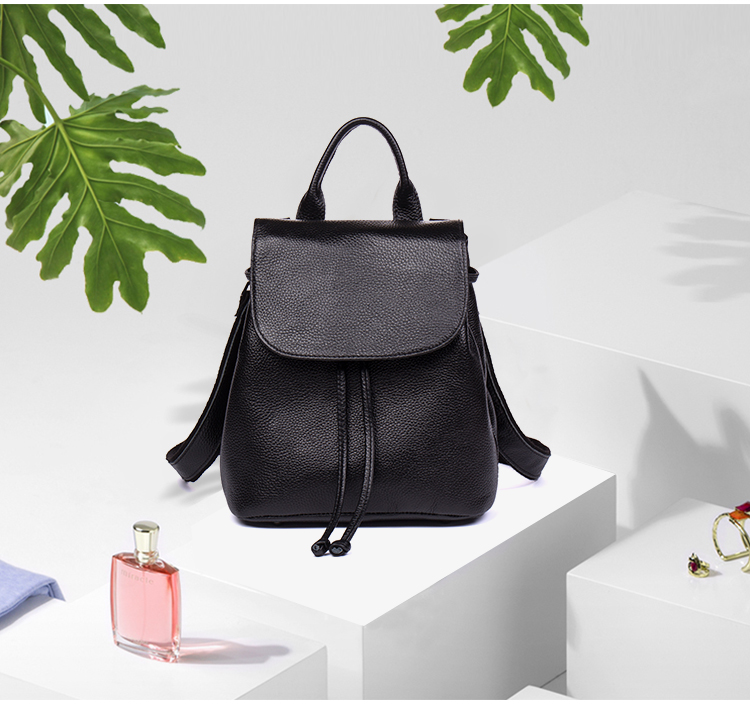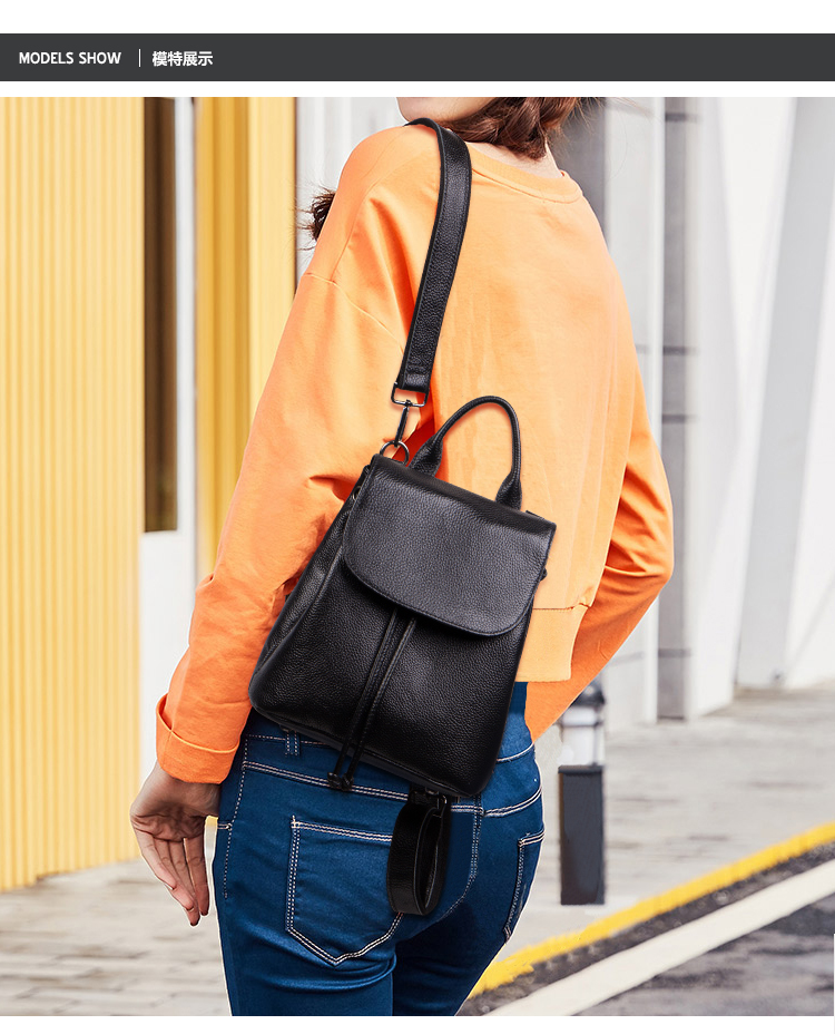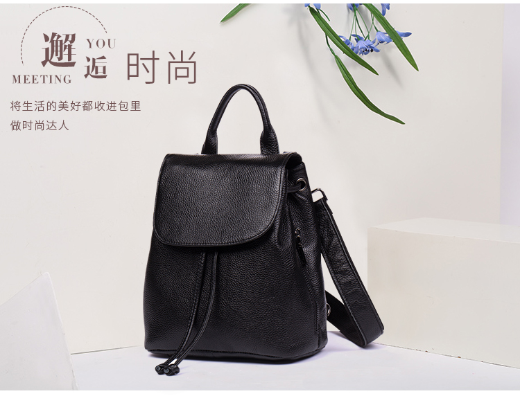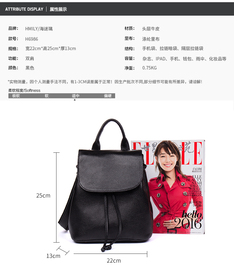 海谜璃(HMILY)头层牛皮女款时尚大方双肩包优雅休闲女士单肩包手提包背包 H6986
