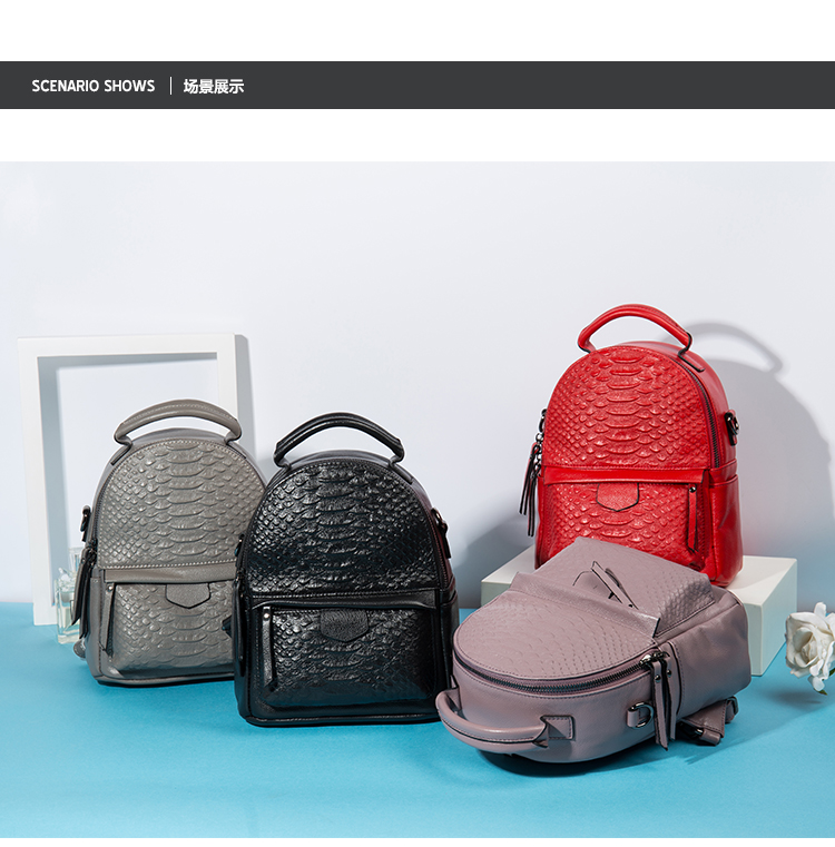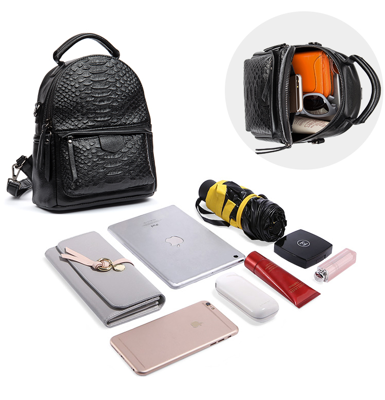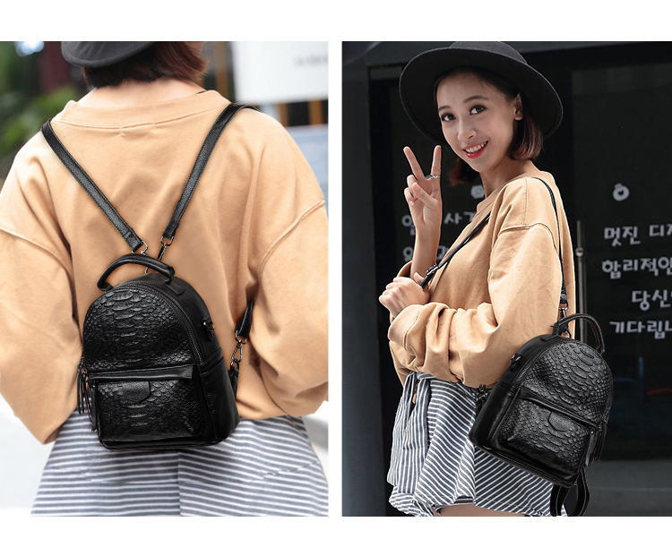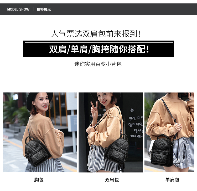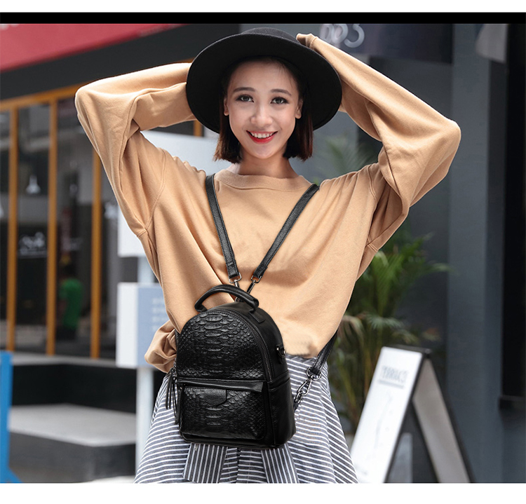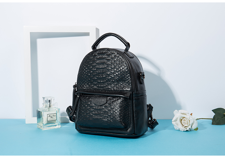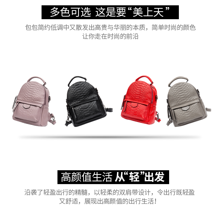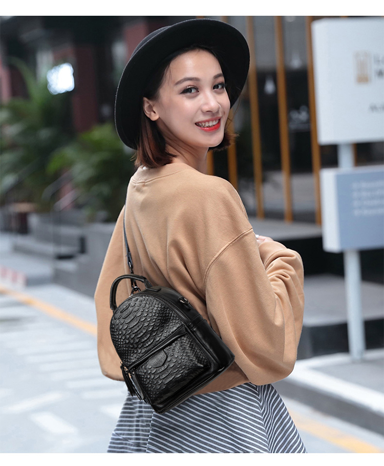 海谜璃(HMILY)新款头层牛皮女士鳄鱼纹背包迷你实用单肩包时尚简约双肩包 H6998