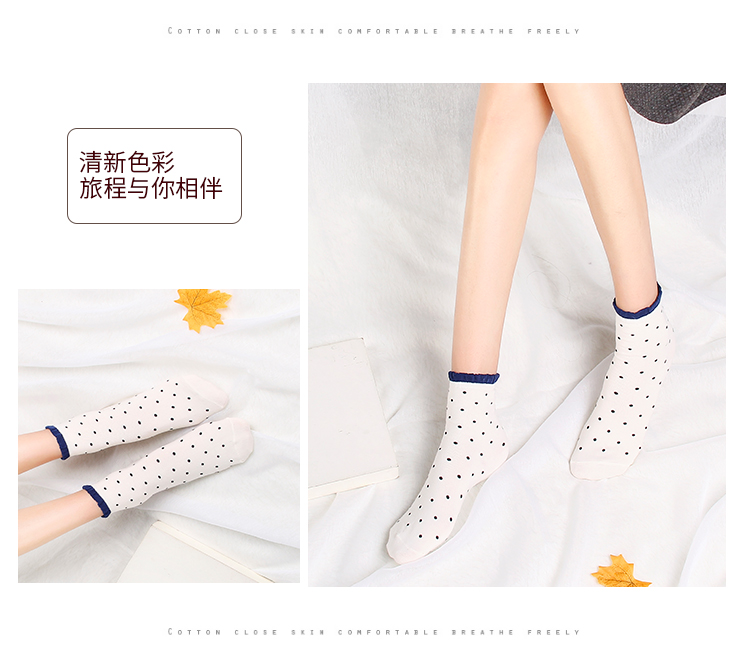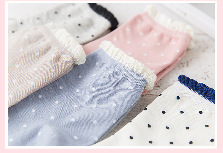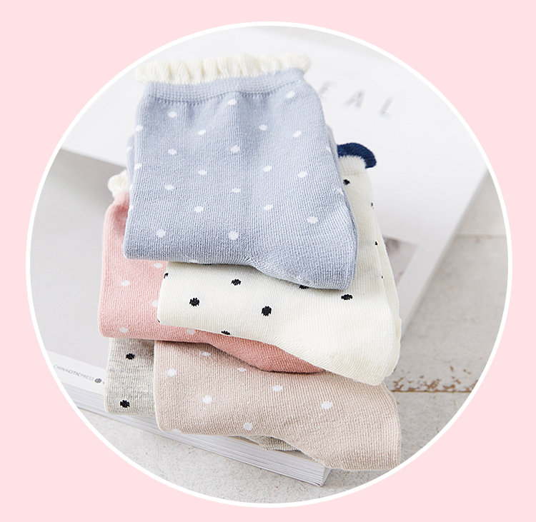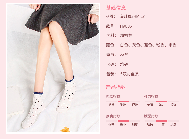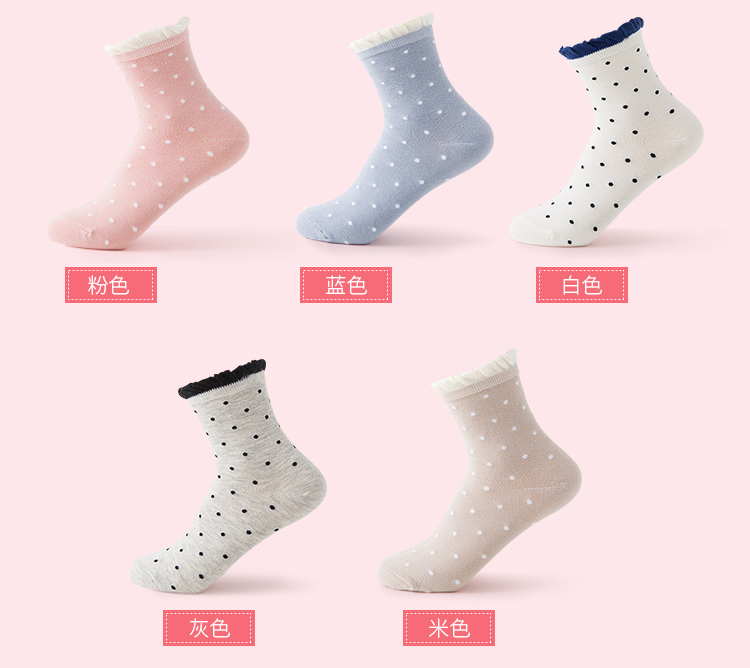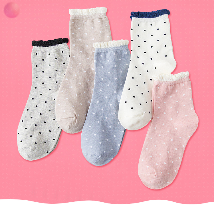 海谜璃(HMILY)棉质小清新保暖女袜可爱波点中筒袜5双礼盒装H9005